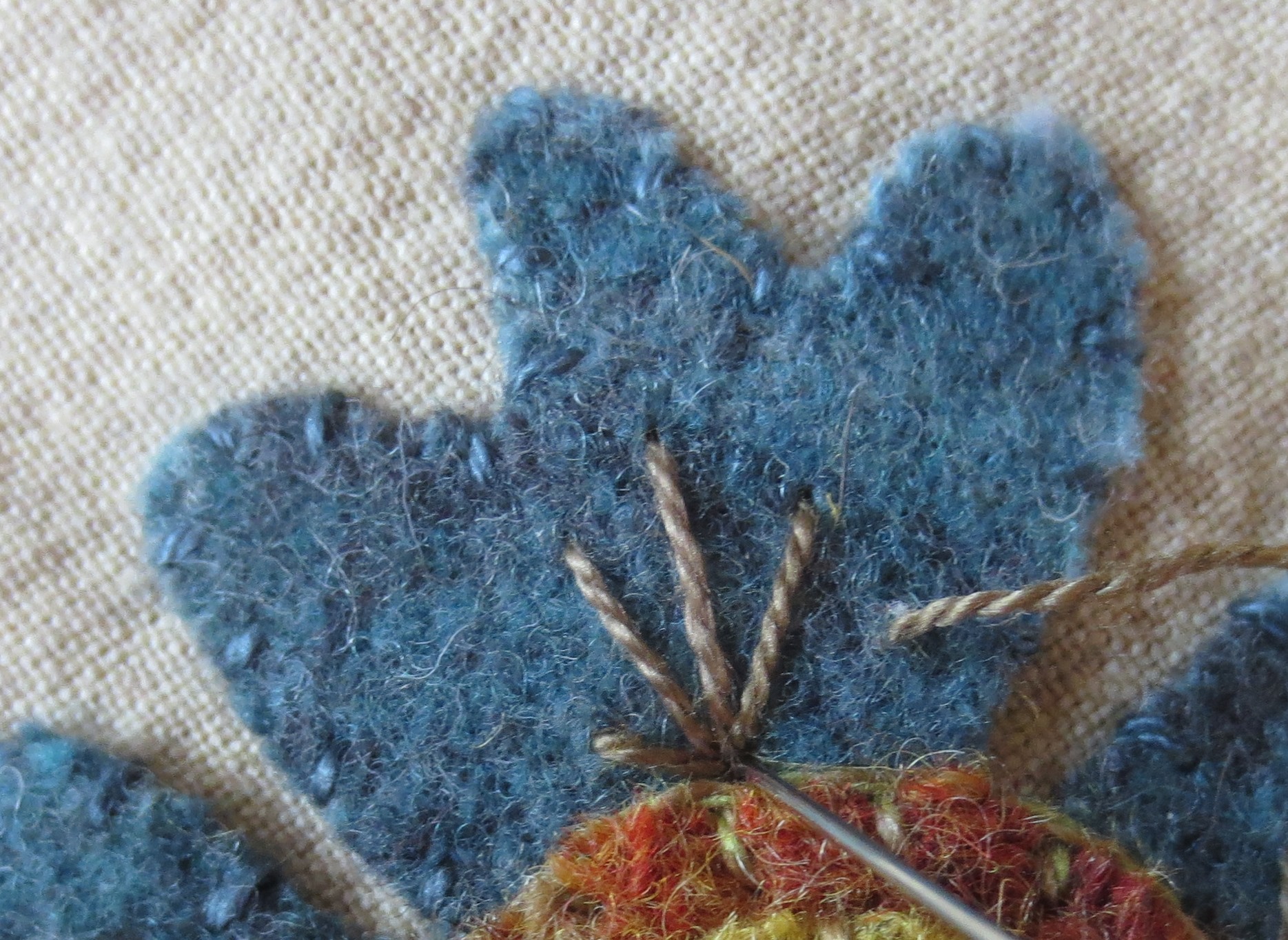 - Use the same thread to whip stitch the outside edges of each leaf.