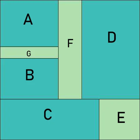 Sew AG to B to make a 6 1/2” x 10 1/2” rectangle.