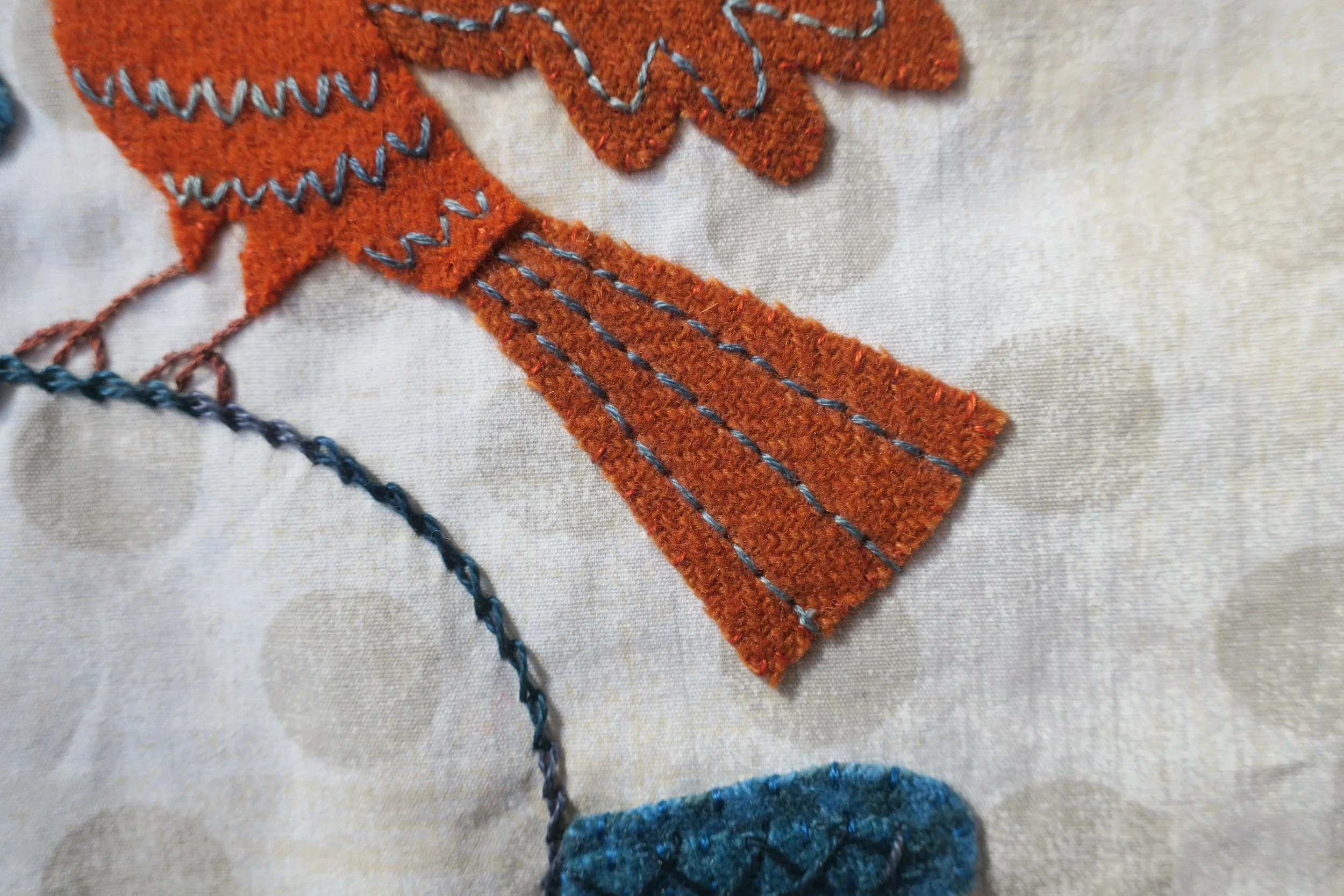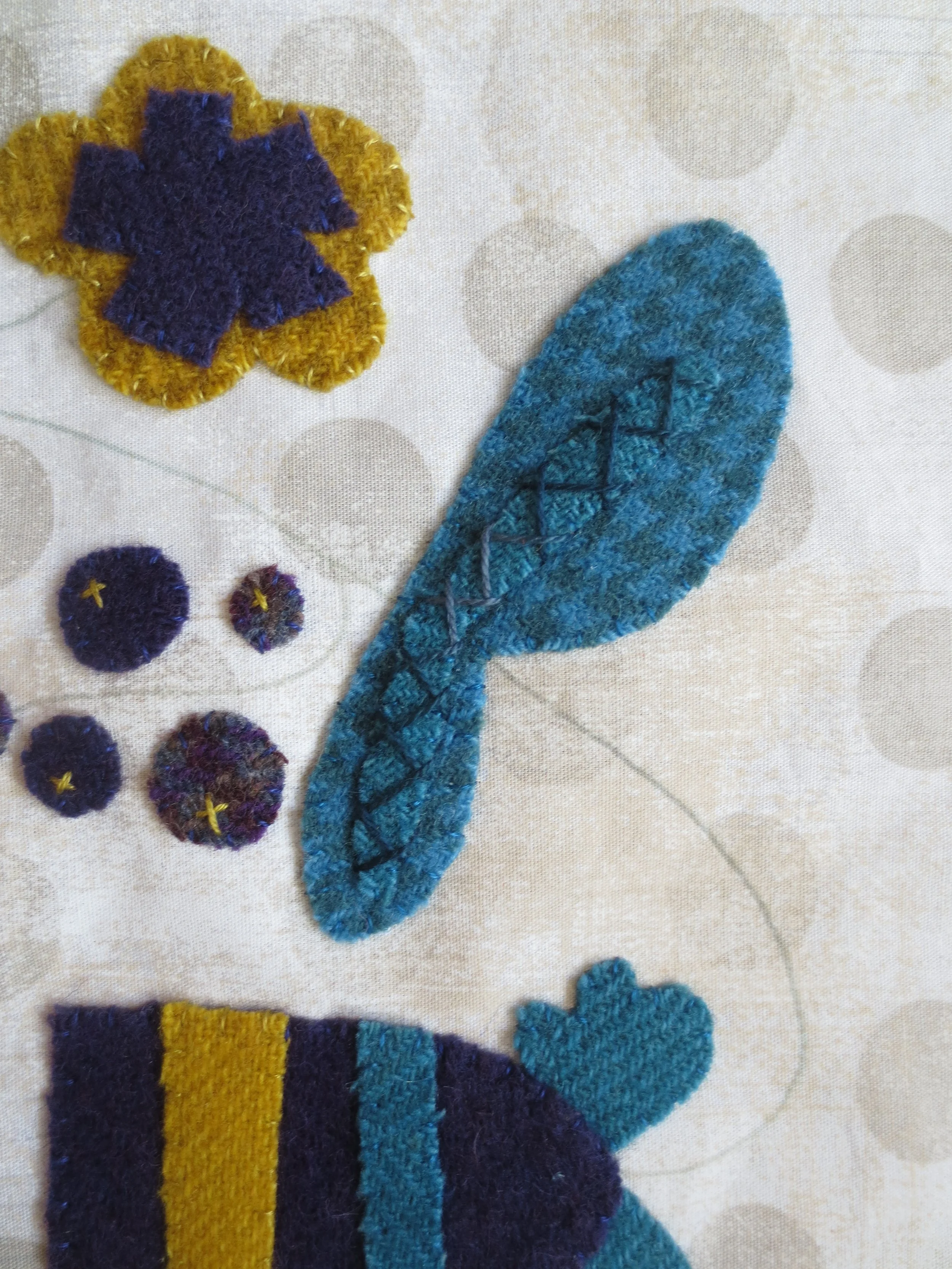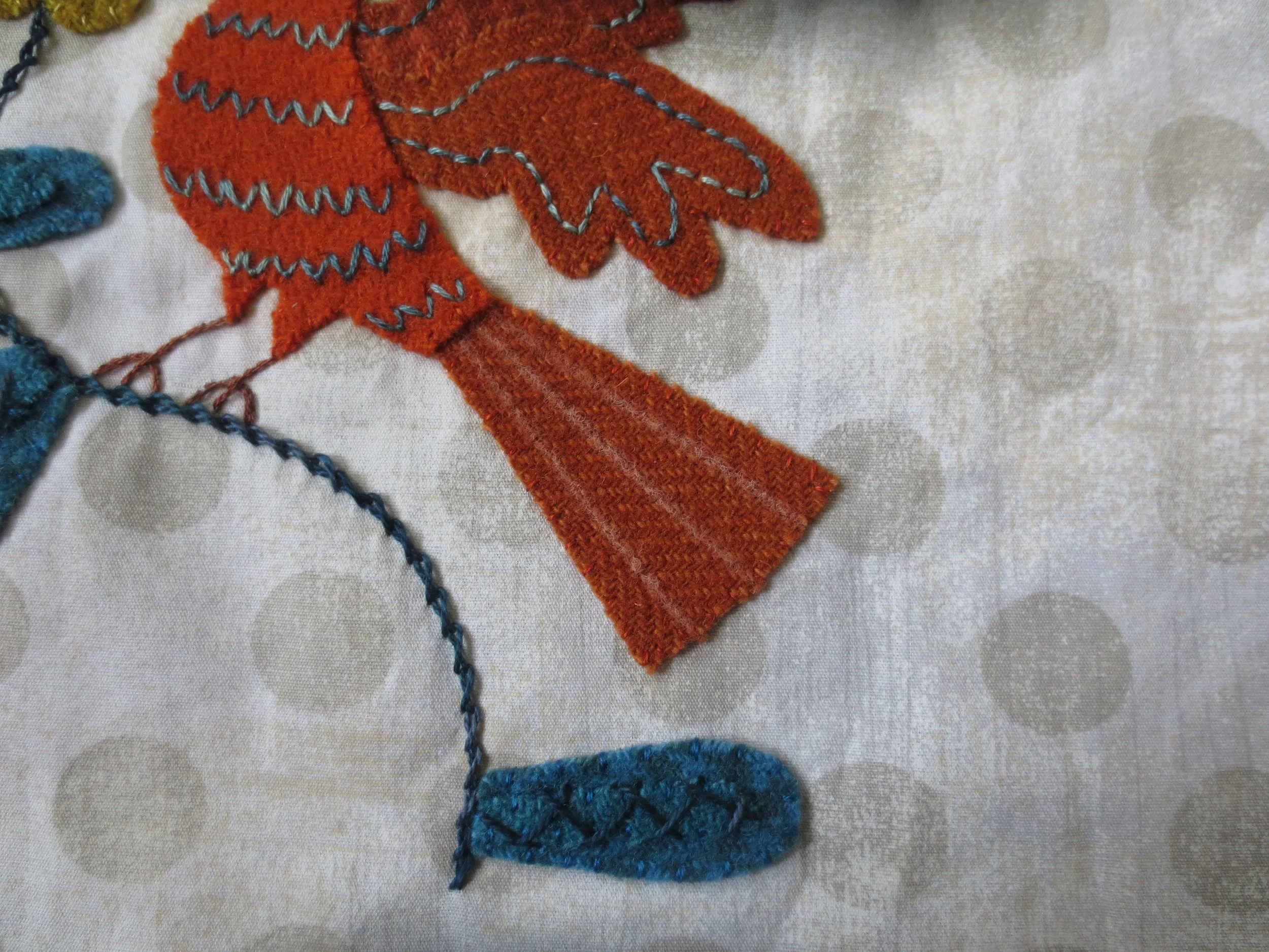 Embroidery floss in colors that match your wool colors - whip stitching of all wool