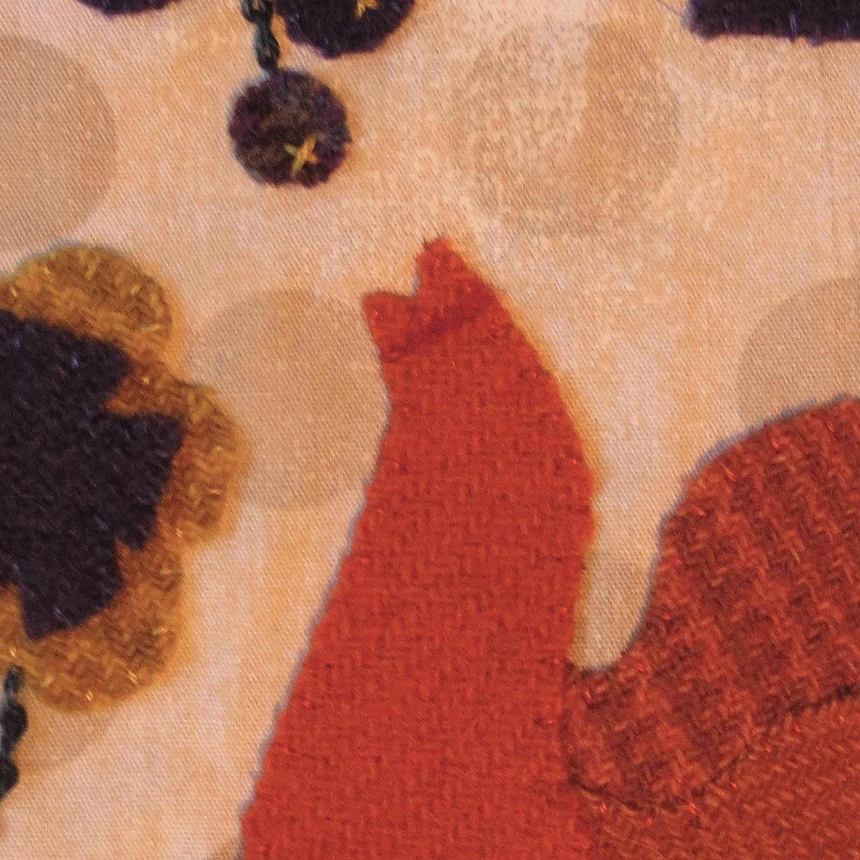 bird tail and bird wing (front) - 3” x 3” burnt orange herringbone