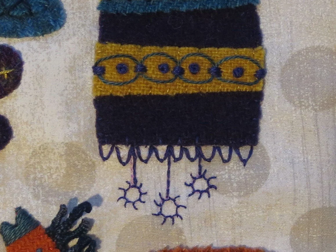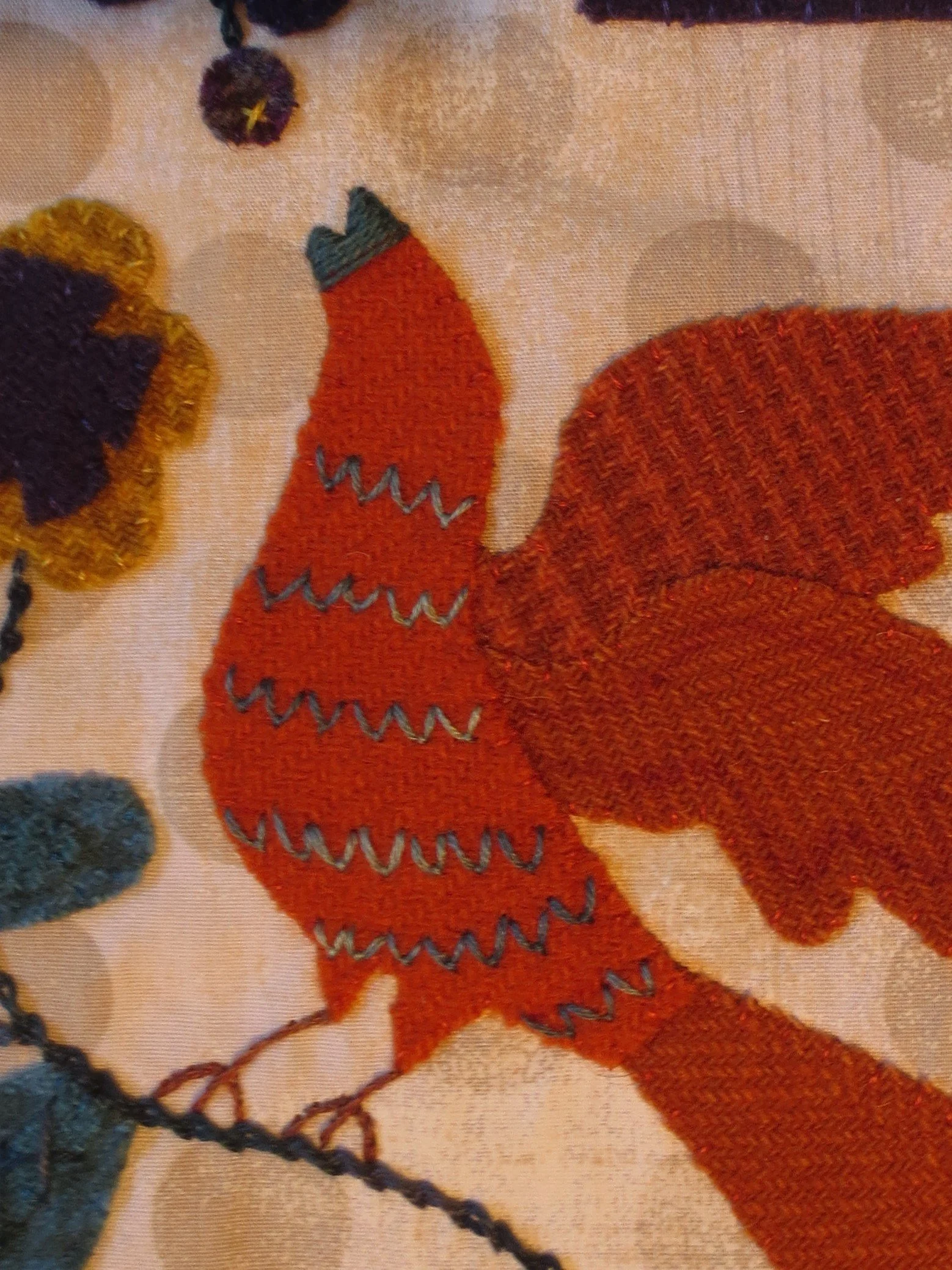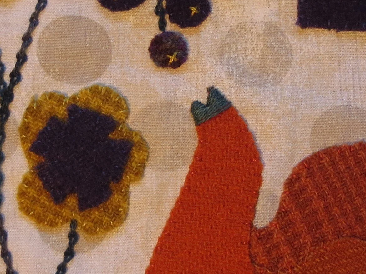 8. Whip stitch the remaining applique pieces in place using 1 strand of matching colored floss. Hint: Begin with the smallest pieces first.