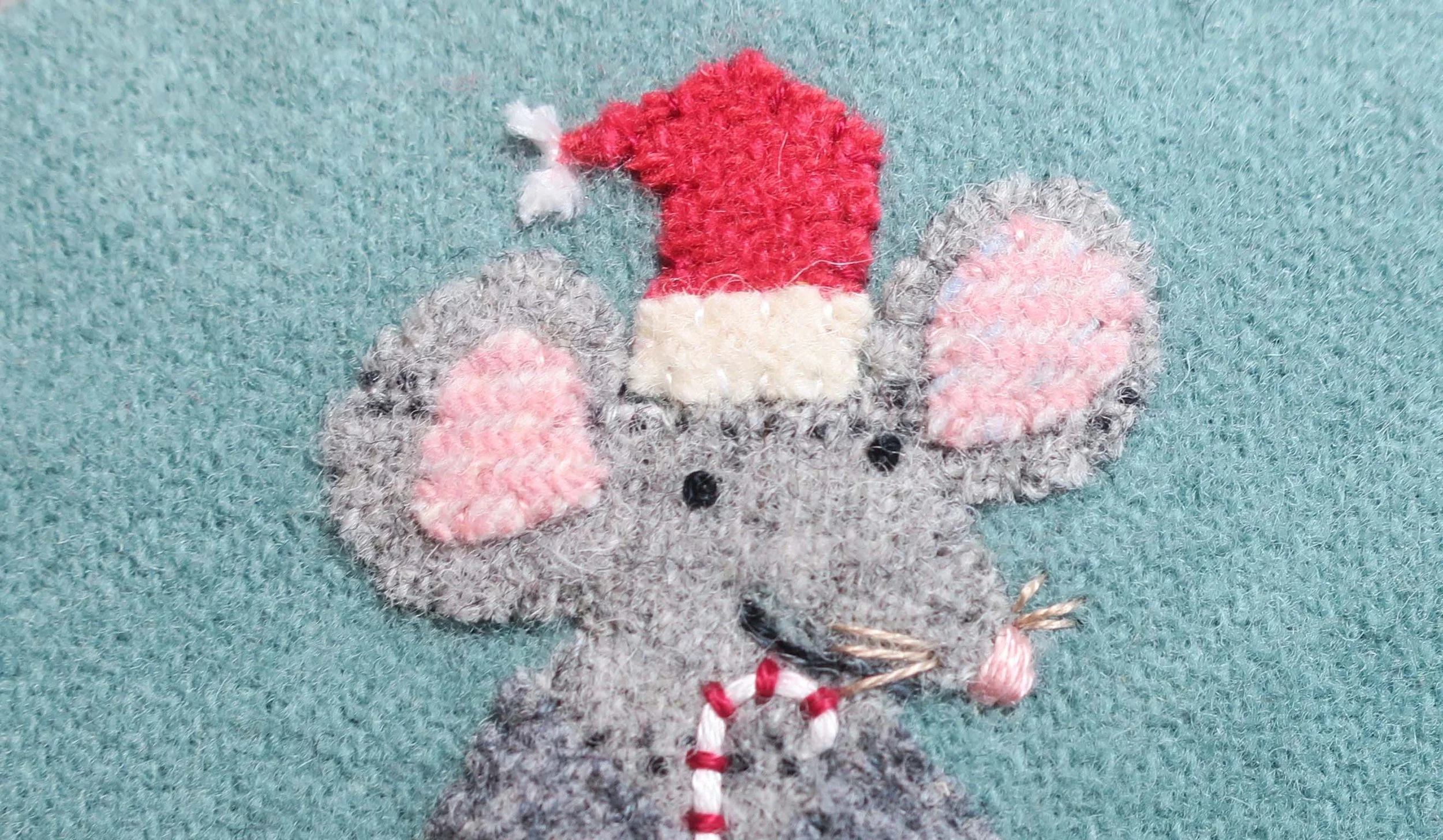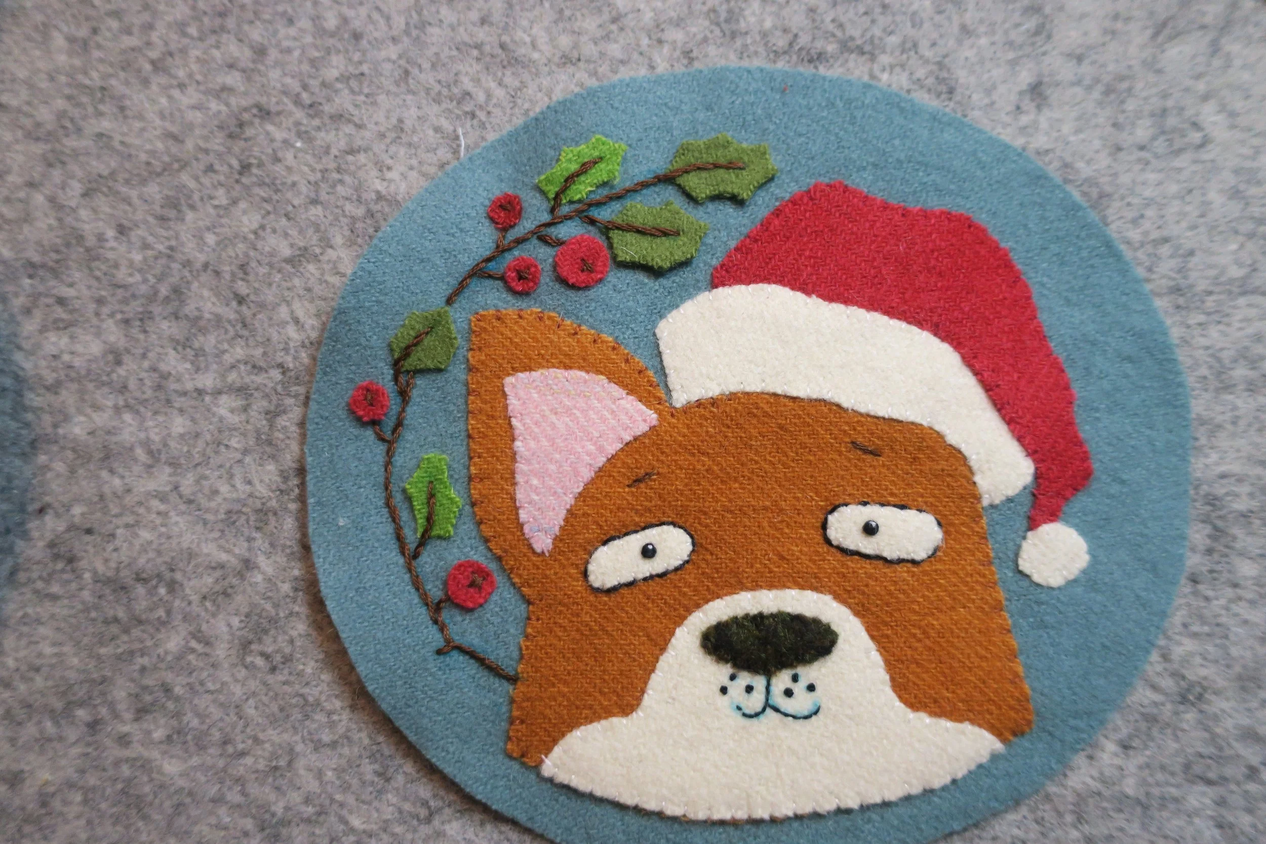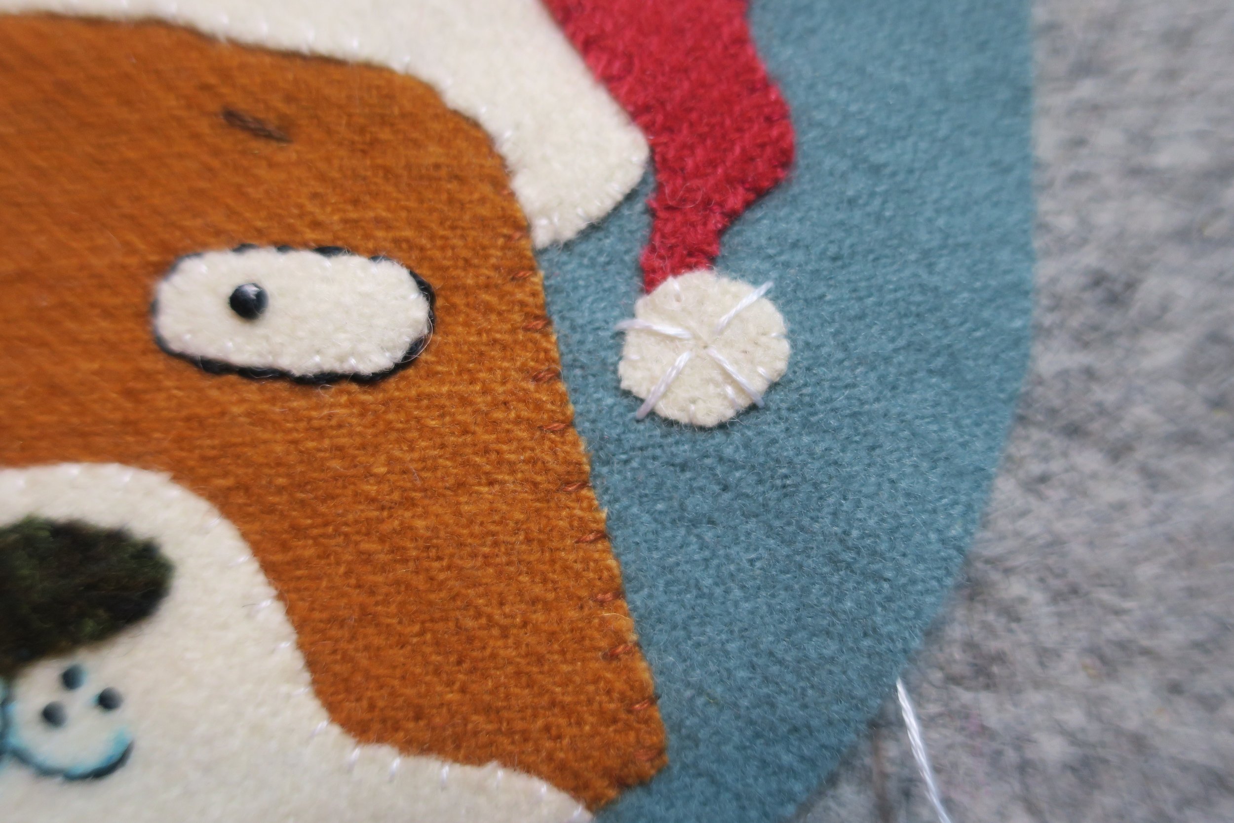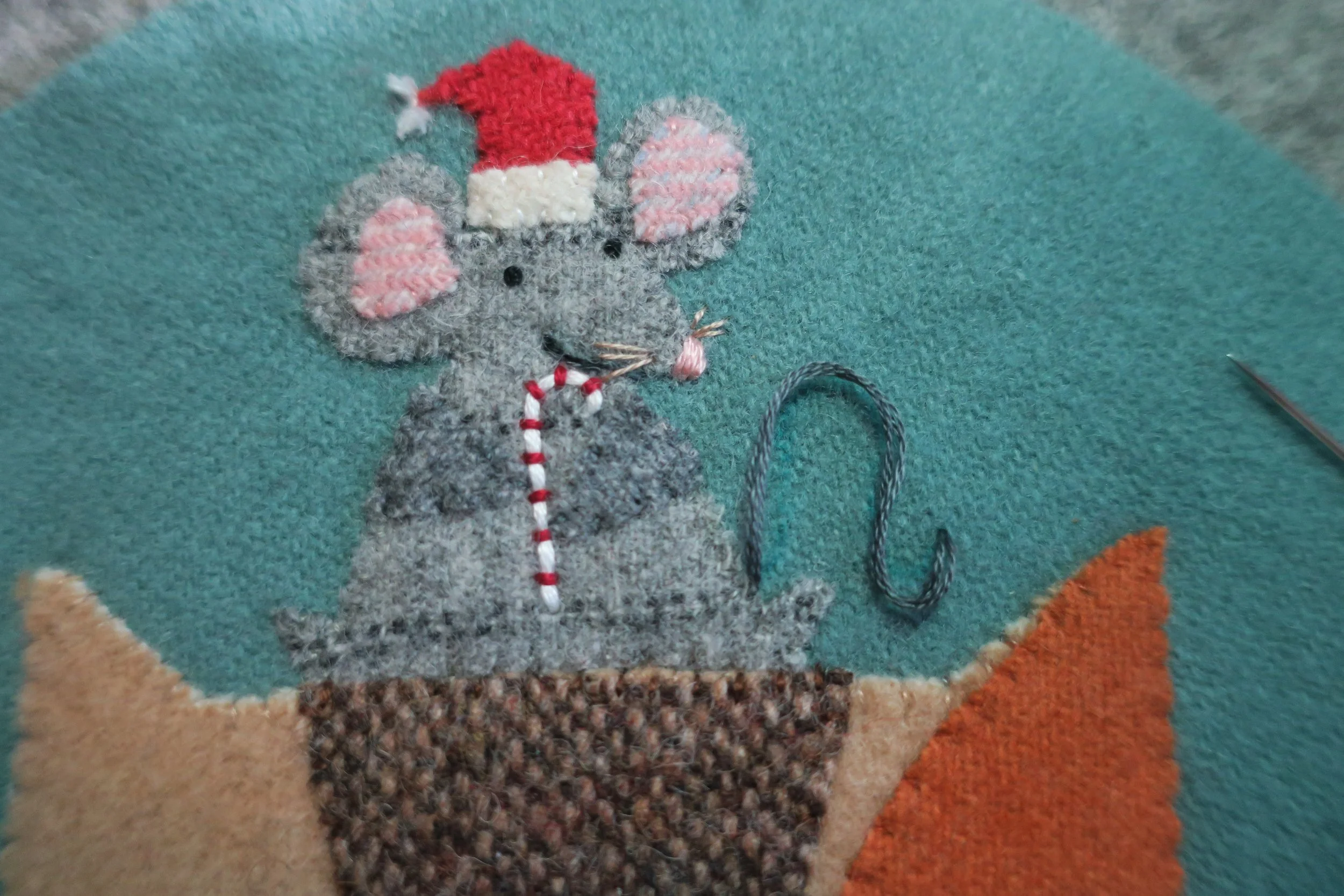 I used 6-strand embroidery floss for most of the stitching. The only exception is the blanket stitch border where I used black perle cotton, size 8. The floss threads match my wool colors.