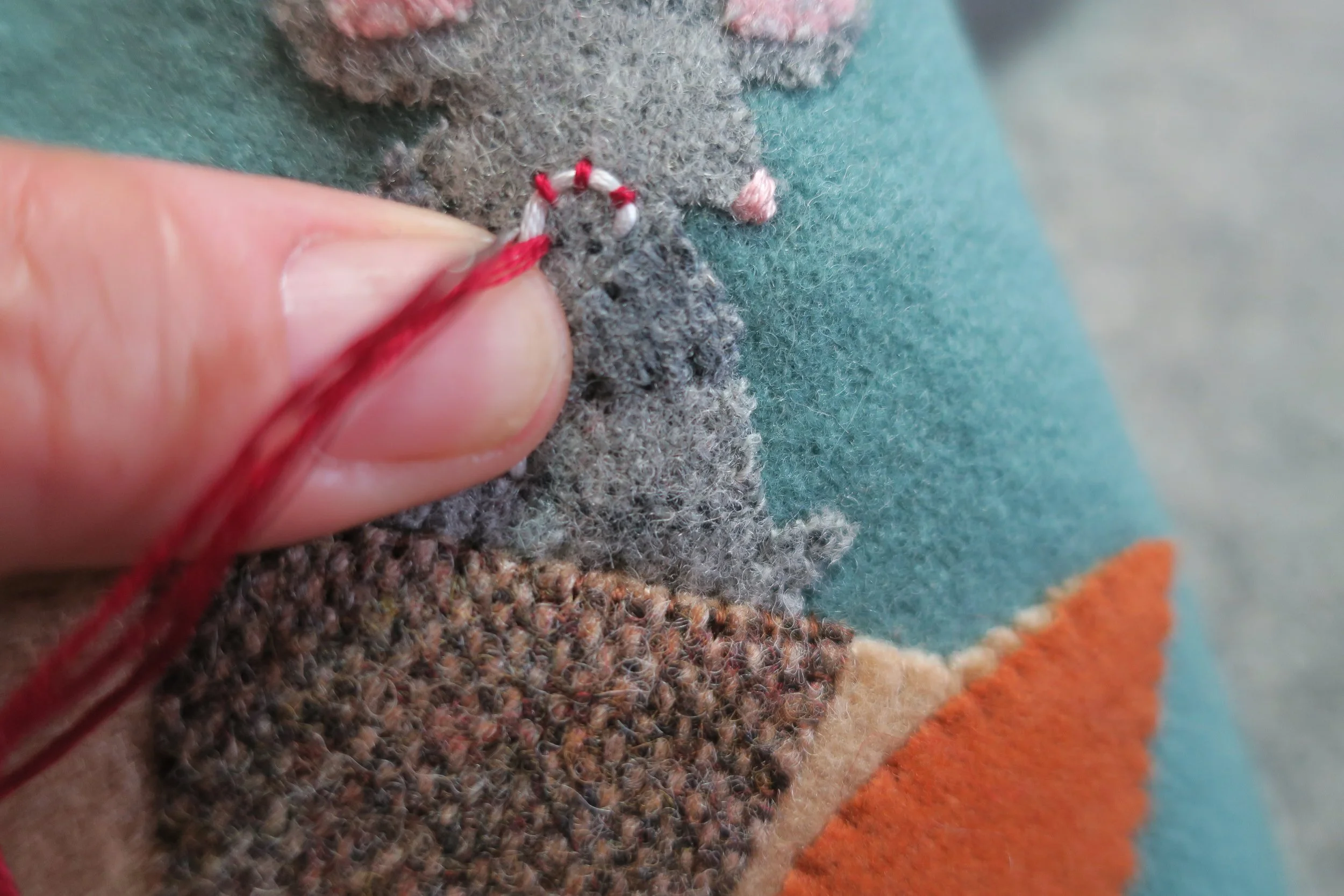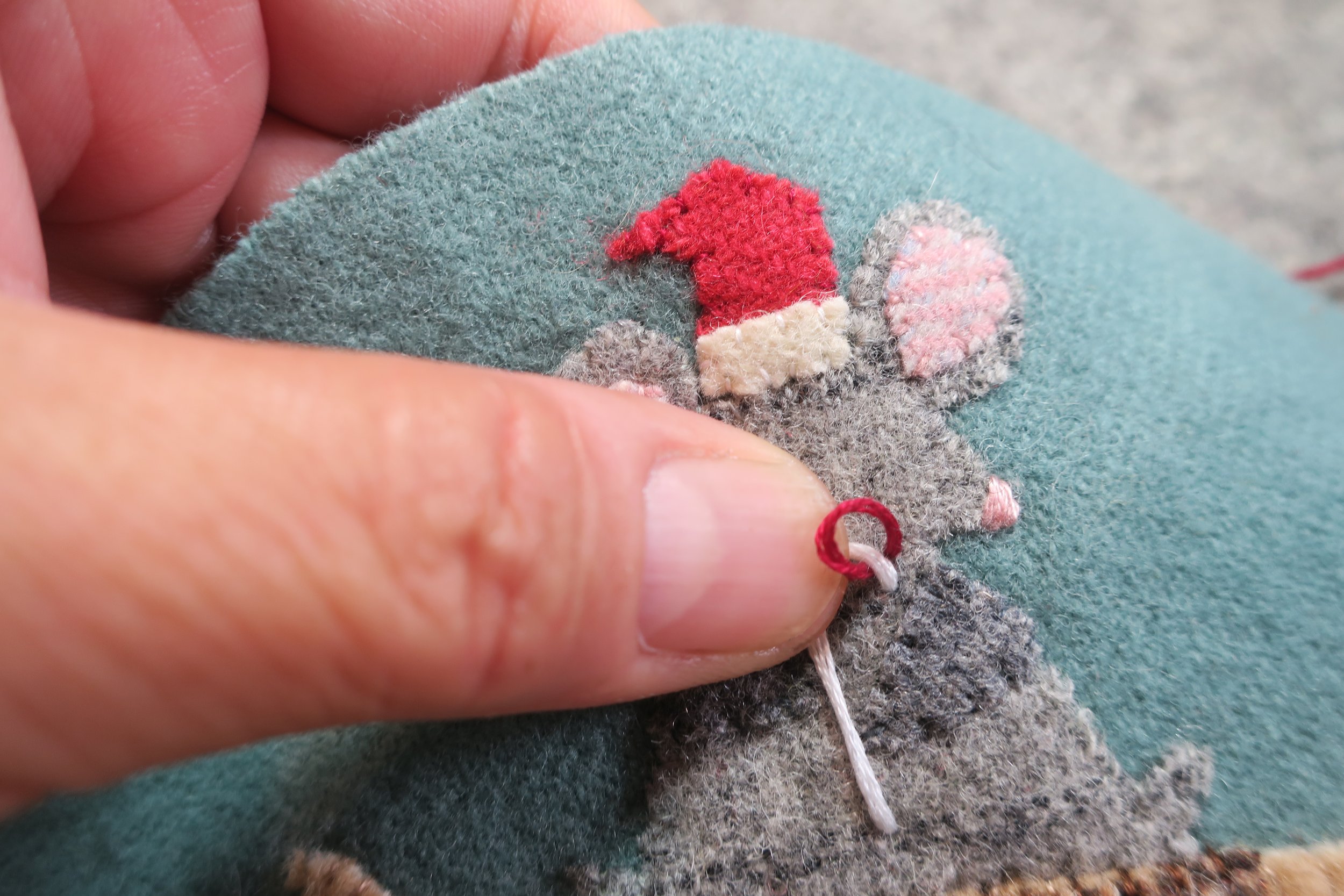 11. Use 1 strand of matching color floss to whip stitch your applique in place.