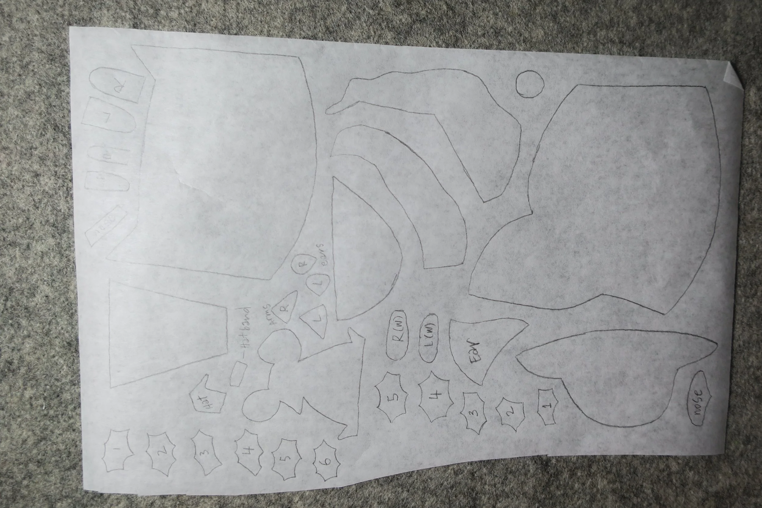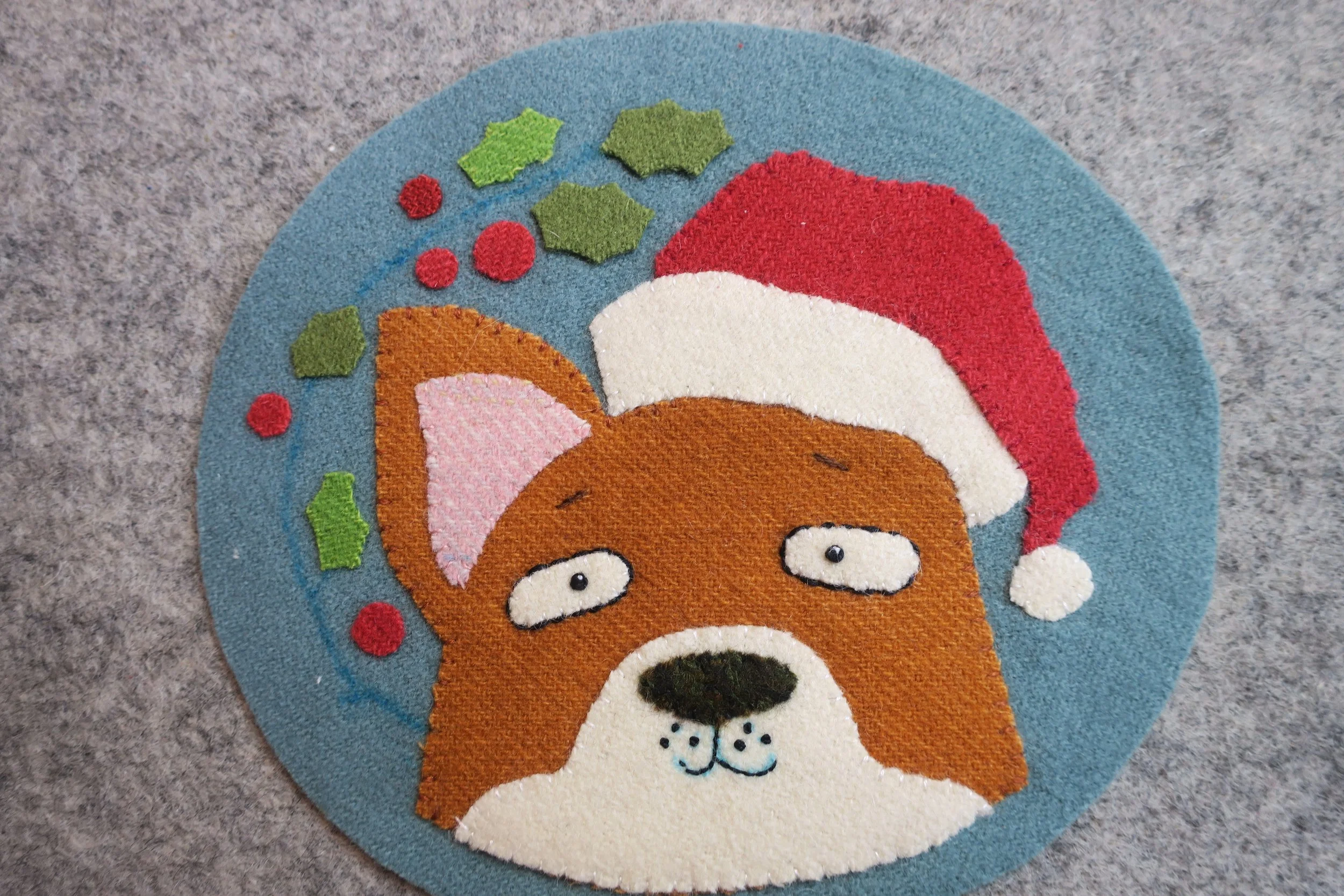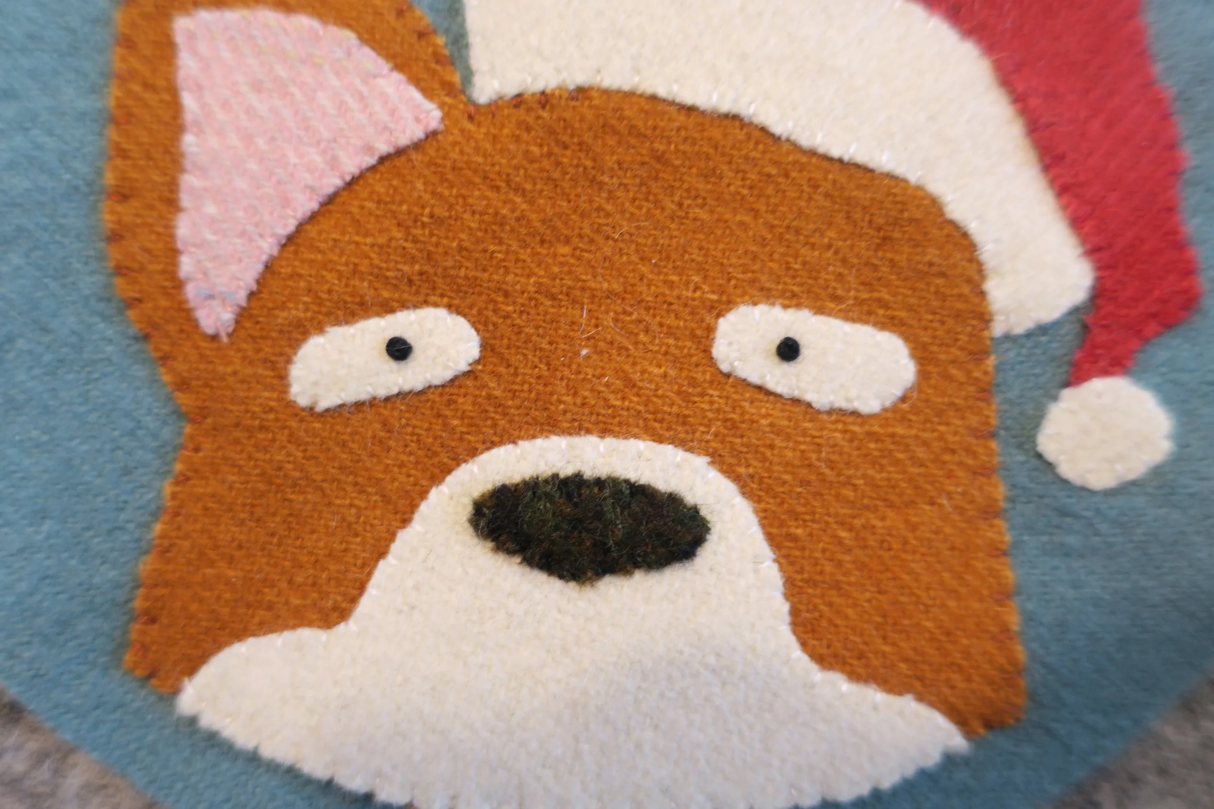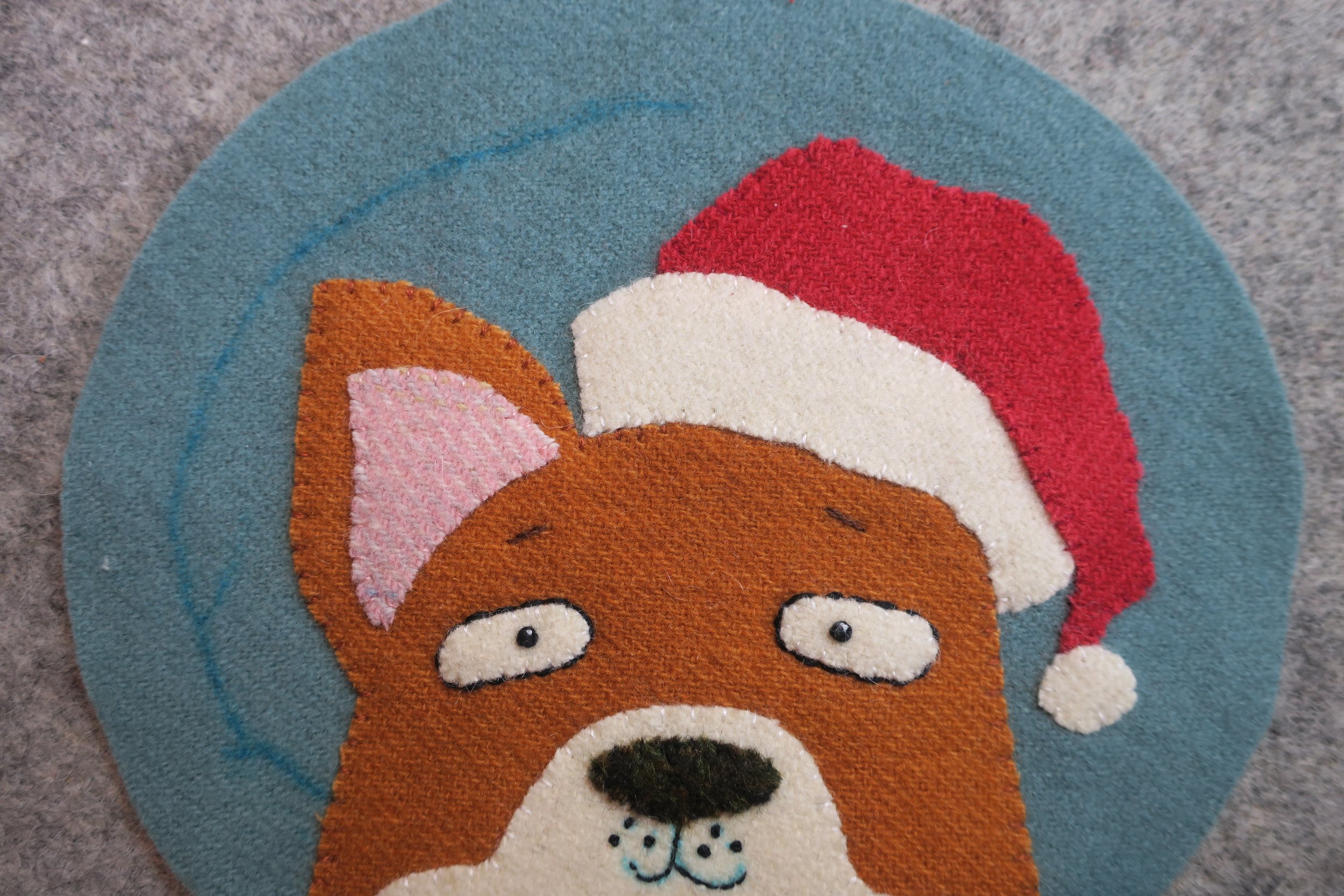 7. Cut out wool applique pieces along the drawn lines. There are a lot of small pieces, so I put them in a small bowl, one for Snickers and one for Winston.