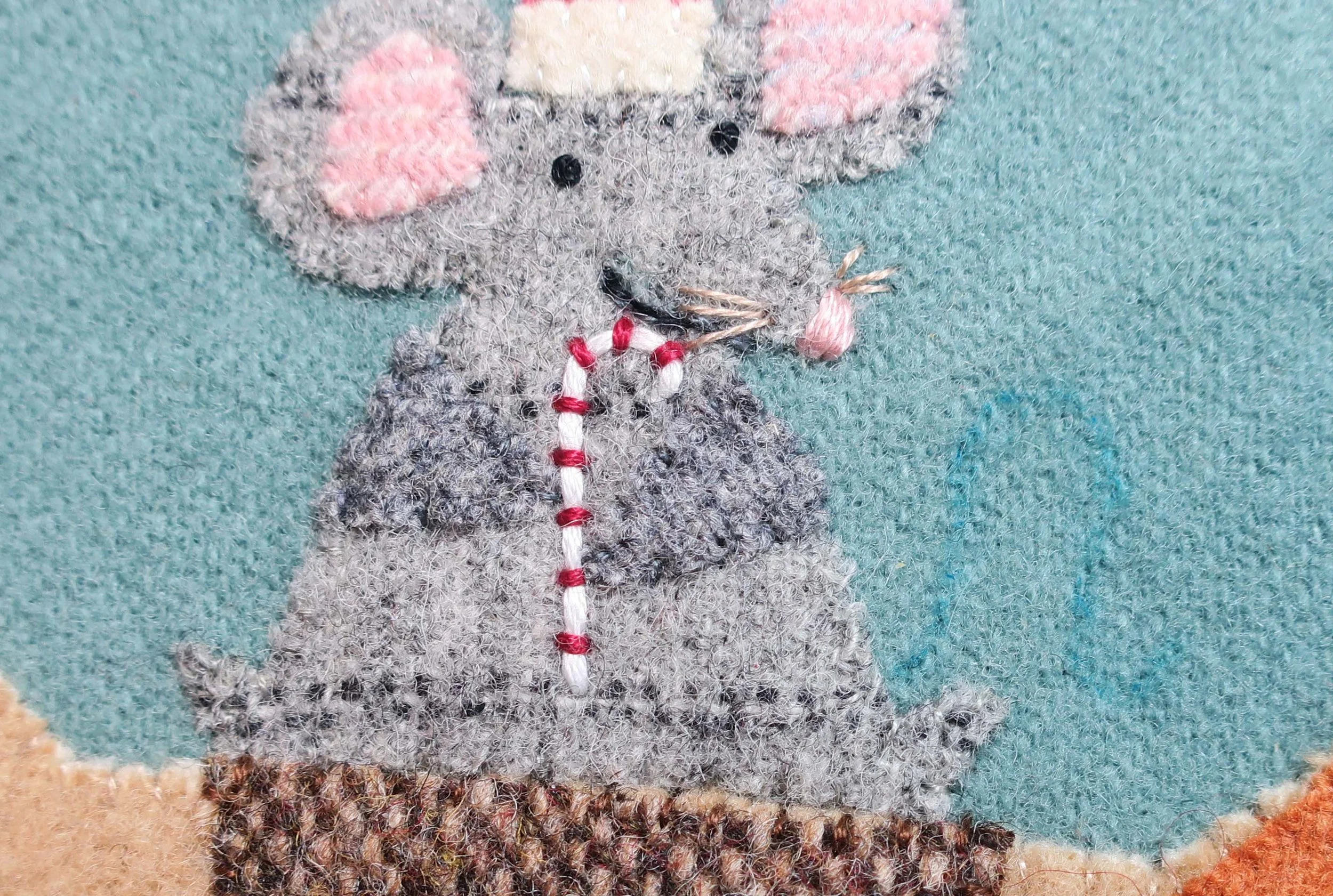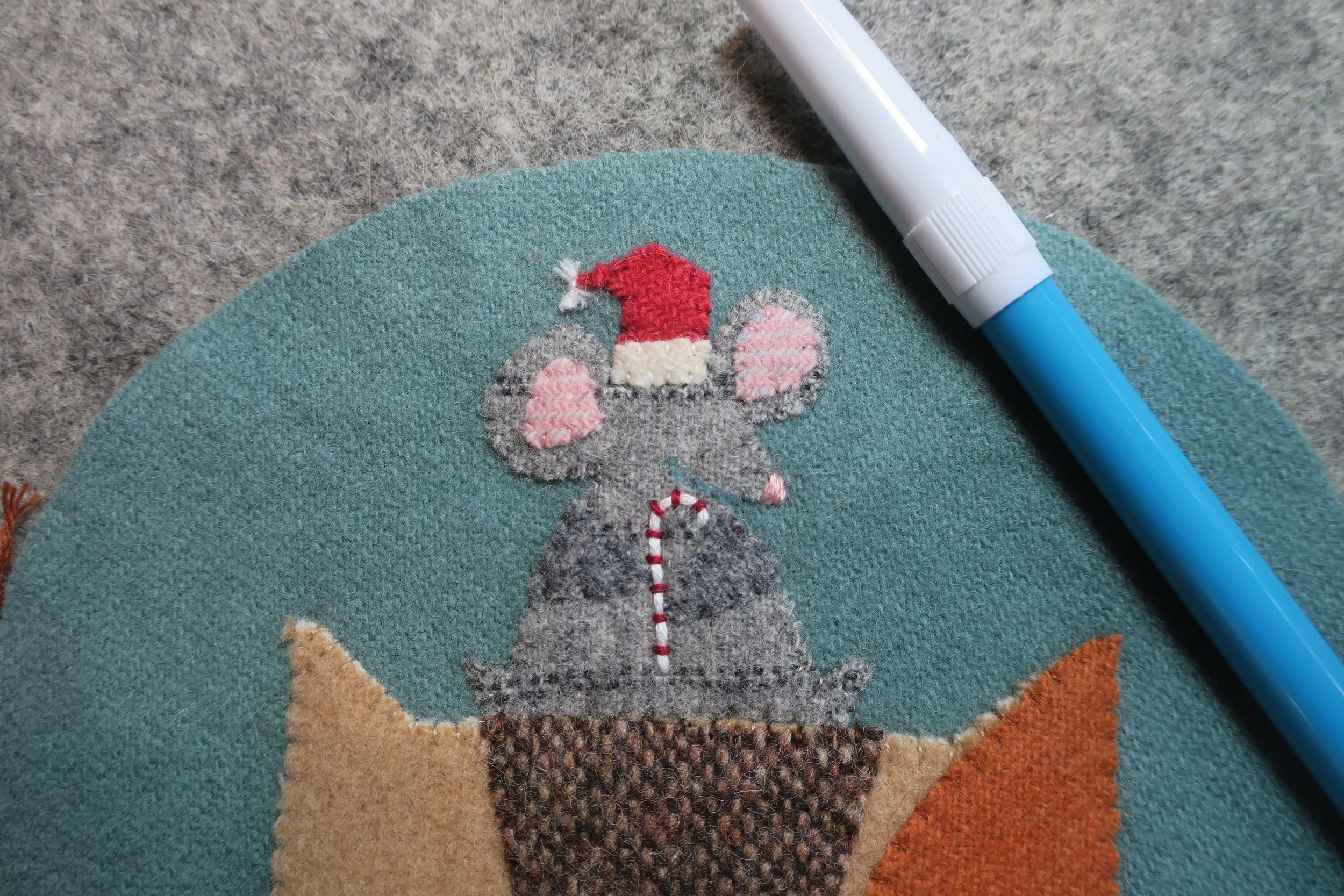 43. Use an erasable fabric marker to draw the mouse’s tail. Use the layout for guidance.