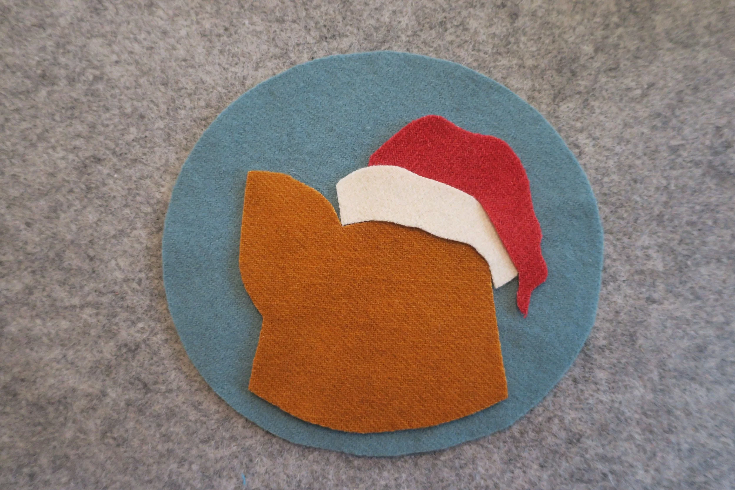 12. Place the eyes, face, ear, and pom pom onto your background using the layout as your guide.