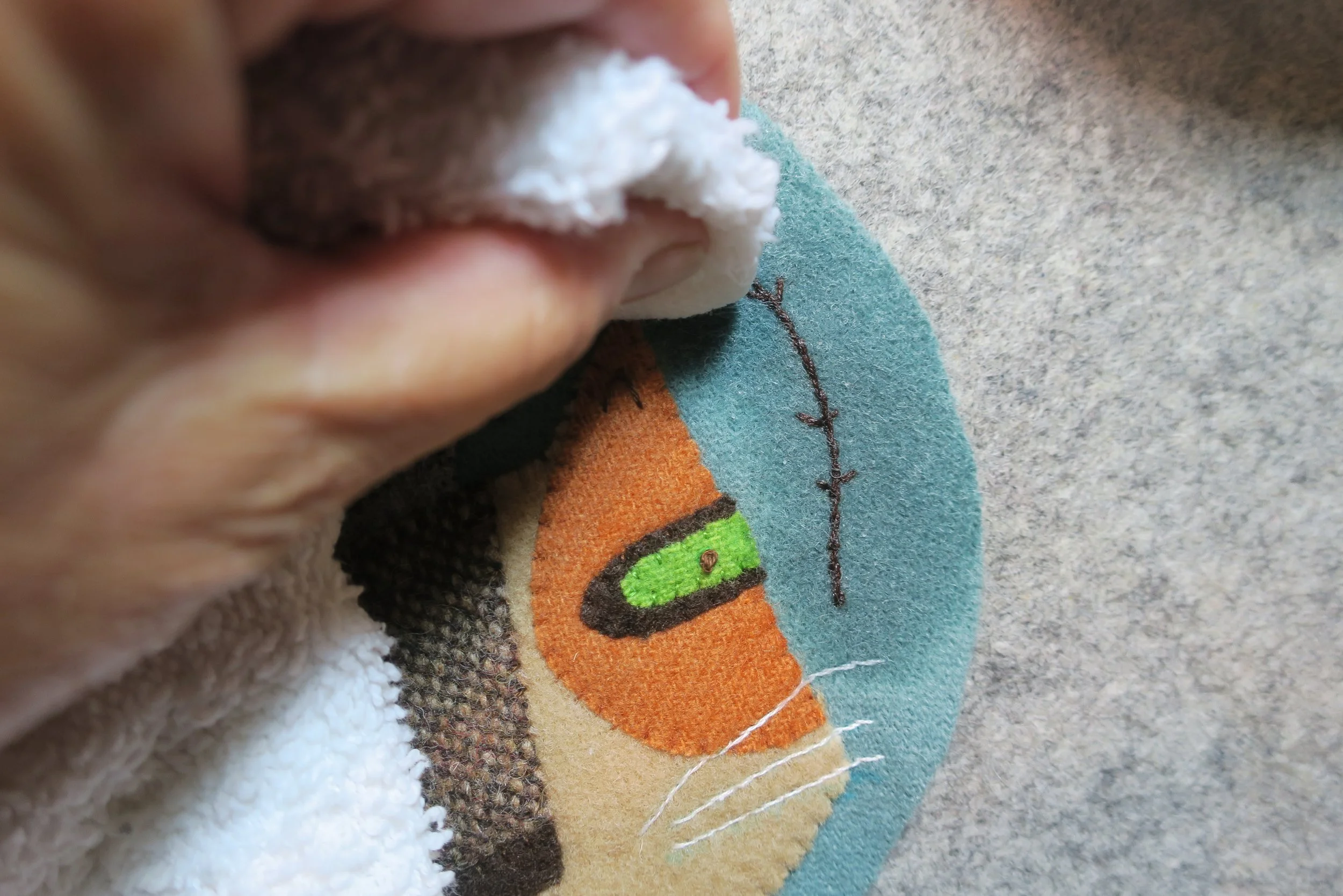 10. Iron in place using steam. Steam will penetrate through the layers of wool to aid in adhesion. I suggest you iron both the front and back sides of your project.
