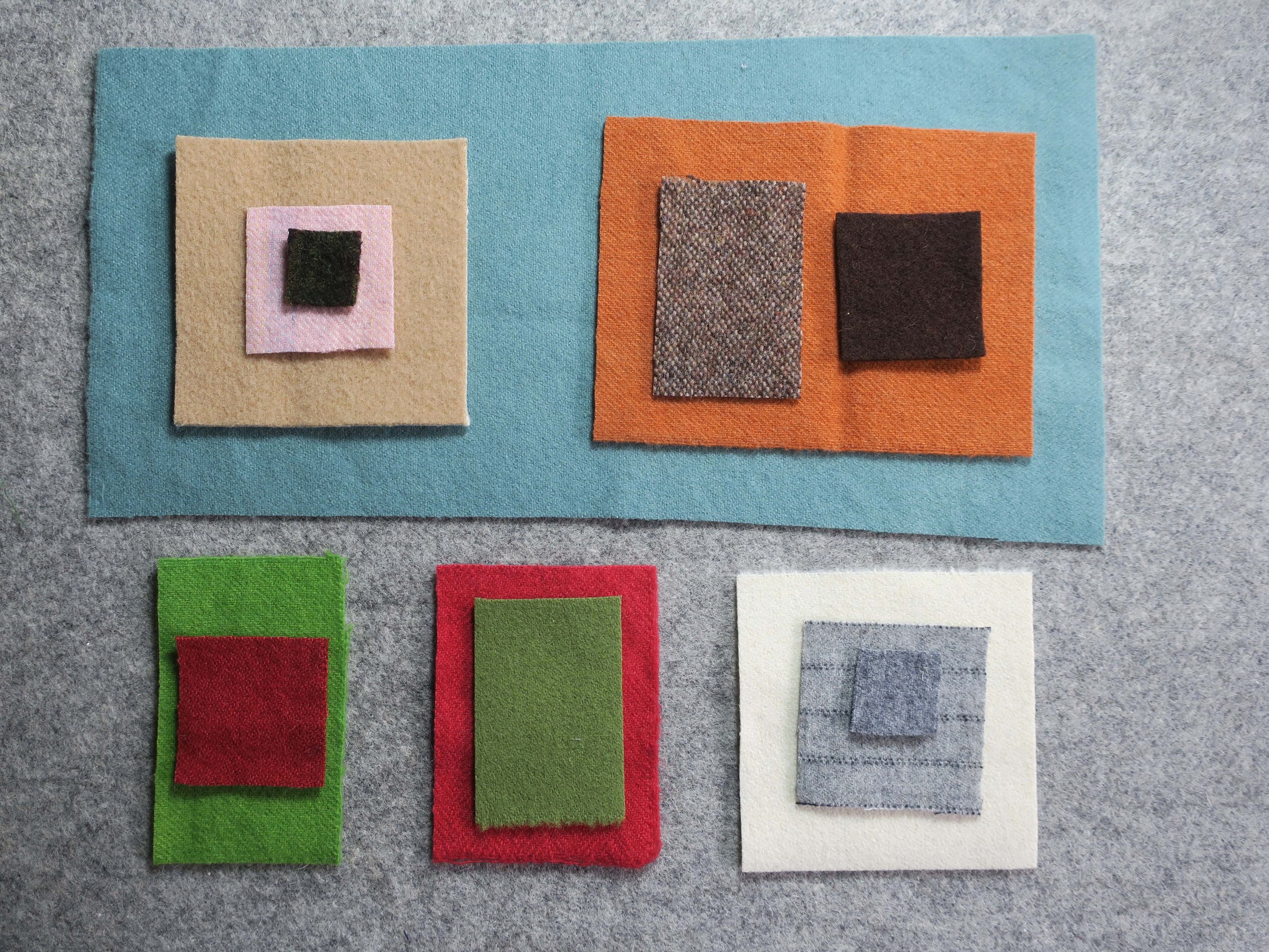 Felted wool or wool felt - Suggested colors (Many of the wools I used are from old moth eaten coats, sweaters, skirts and suits that I washed and overdyed, then tumbled dried to felt them.)