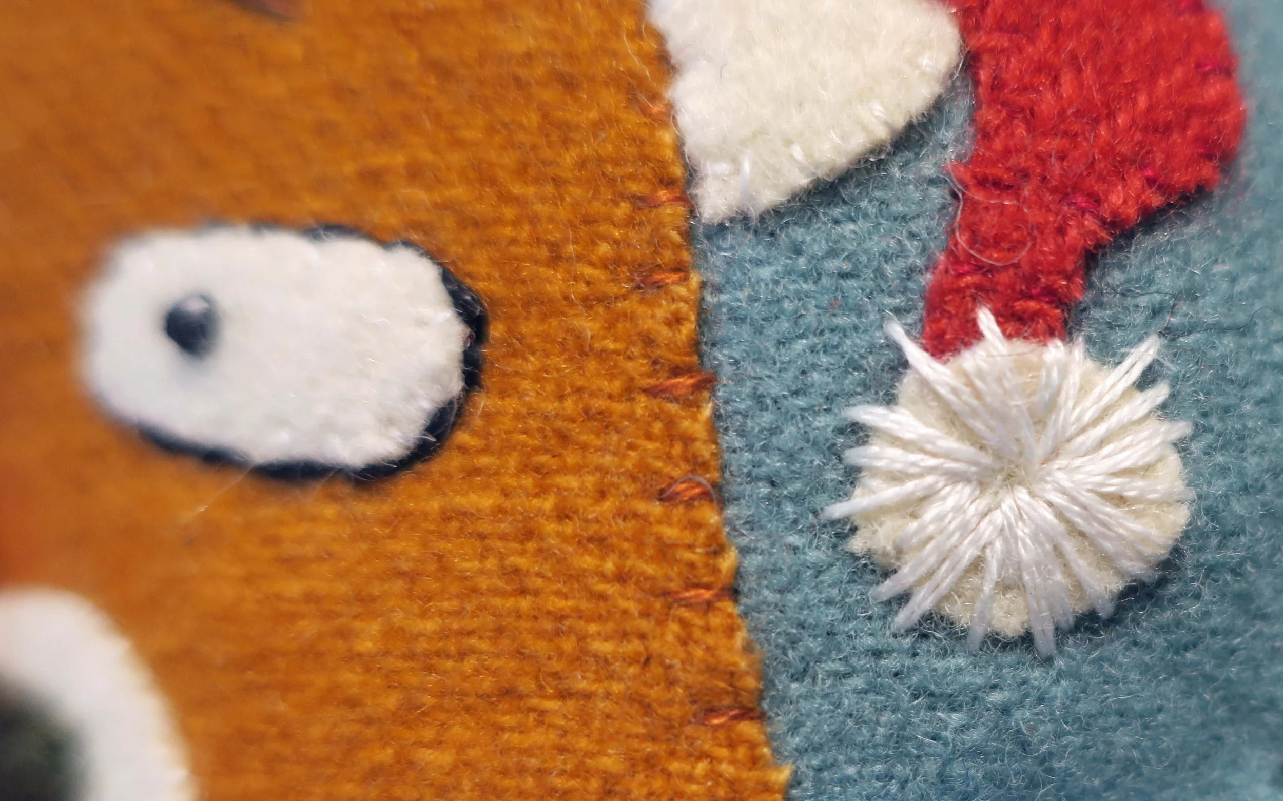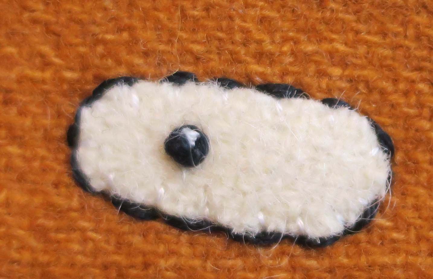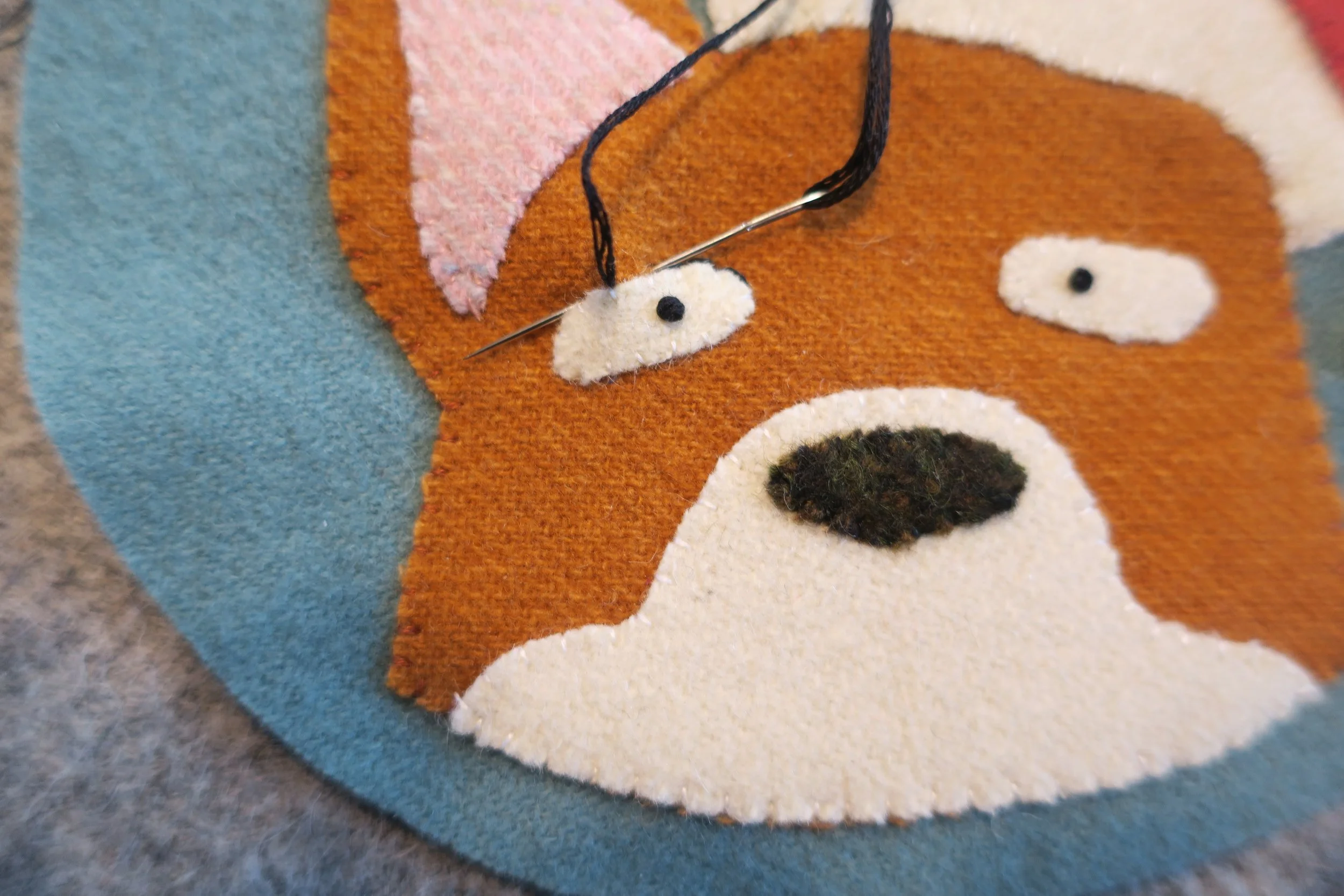 14. Position the nose, and then fuse using steam. Use 1 strand of black floss to whip stitch in place.