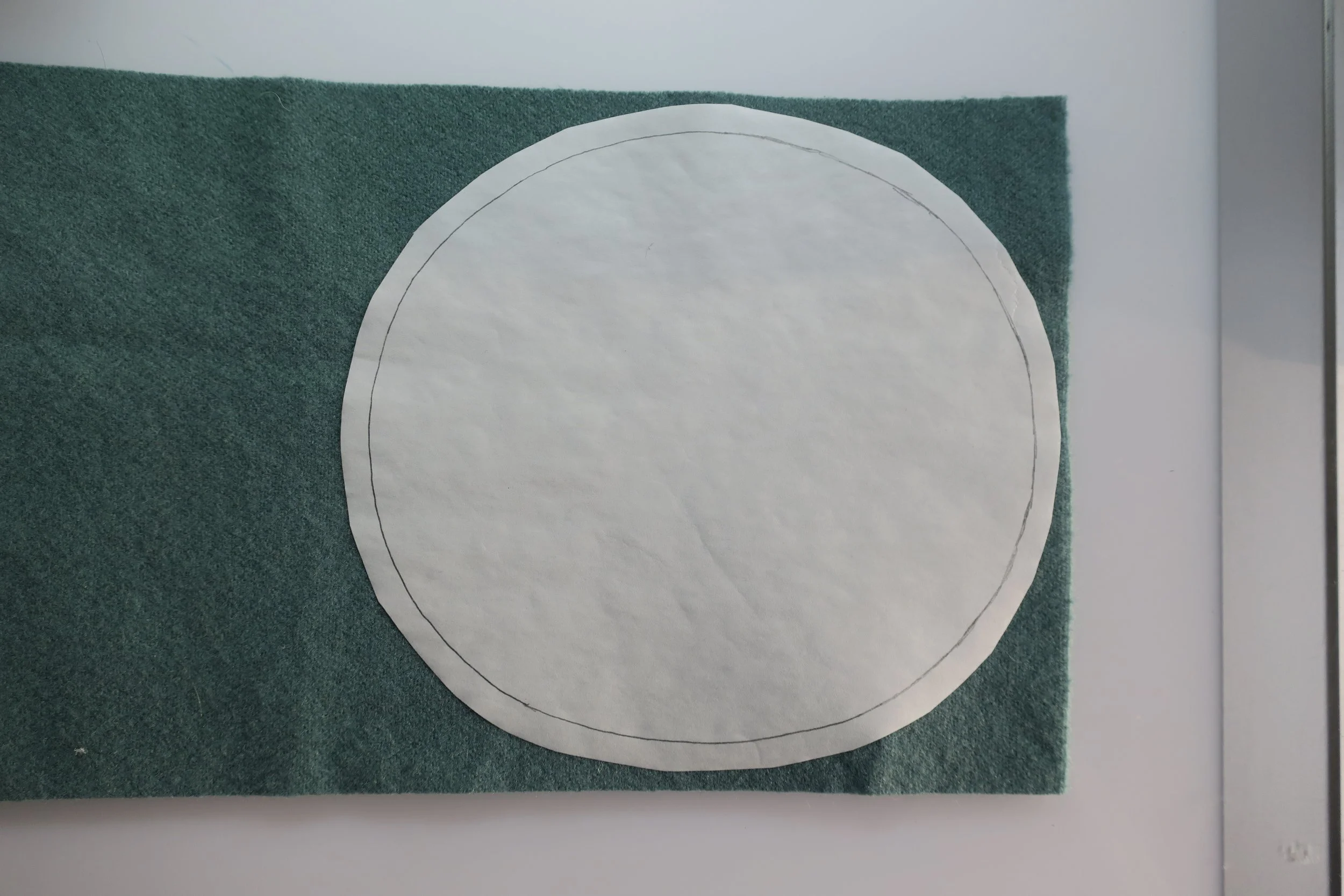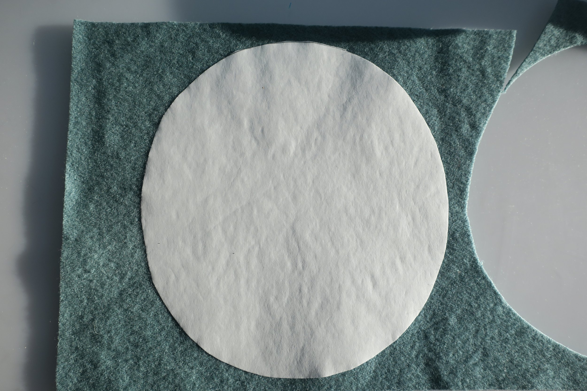 3. Cut out the wool background oval along the drawn line. Remove the freezer paper.